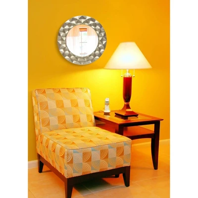 If you are looking to add a touch of sophistication to your living room, foyer or dining area, the Glam wall mirror is your first choice. This stunning mirror features a beautifully sculpted brushed champagne silver frame and boasts an attractive geometric border that is both eye-catching and classy! Easy to hang and measuring 18 x 18 x 2.5, the Glam wall mirror is the perfect accent with vibrant color schemes. Add a touch of 5th Avenue style in your home today!