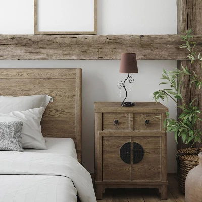 - Includes 1 x brown tapered drum shaped fabric shade that secures to the base using a socket nut