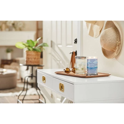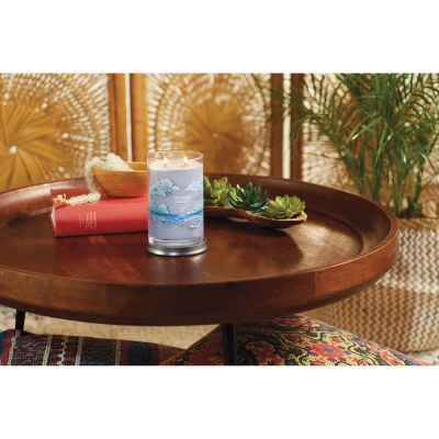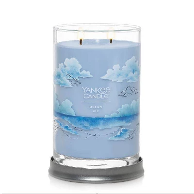 Experience the Yankee Candle® brand, totally reimagined. A fresh take on our Tumbler shape features a brushed tin lid that fits neatly under the base to serve as a candle coaster. Two cotton wicks and a premium soy-wax blend provide a clean burn. Hand-illustrated labels and vibrant wax colors are perfectly matched with Collection-exclusive and tried-and-true fragrances to create an inspired addition to your home. Escape to fresh and invigorating ocean air carried in by white capped waves through the Ocean Air fragrance with clean, sunny notes mingled with jasmine, white amber and sandalwood.