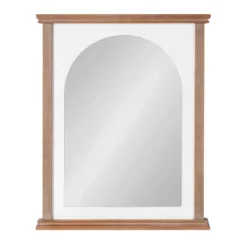 Decorate your home with a coastal aesthetic that makes a bold impression with the Brenna wall mirror from Kate and Laurel. Inspired by vintage farmhouse decor, the Brenna wall mirror features an arched opening with crown moulding at the top and bottom of the frame. This crown moulding delivers a lovely sophistication and a beautiful dimension to any wall of your home. The wooden frame of the Brenna wall mirror is also distressed by hand to give it that antique look, in addition to its lovely two-tone rustic brown and white finish. This beautiful mirror looks fantastic mounted on the wall in your living room, bedroom, entryway, or dining room. The mirror’s overall dimensions are 22 inches wide by 28 inches tall, so it also looks fantastic as a powder room or master bathroom wall mirror above your sink. Adding a mirror to your home not only enhances your wall decor but also spreads more light throughout your space. Hang the Brenna wall mirror in a matter of seconds with the D-ring hangers securely attached to the back of the frame.