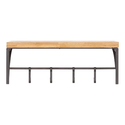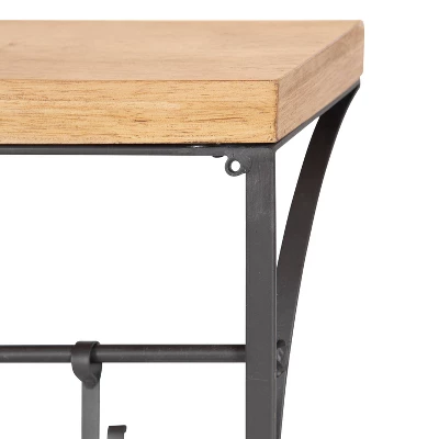 This modern storage shelf is the perfect way to showcase your style with a functional element. Putting a modern twist on farmhouse functionality, the Ozias shelf features a sleek, minimal design with a solid wood shelf and four functional iron hooks. The two-tone rustic brown and black finish brings a comforting coziness to your space while blending into a variety of decorative themes in your home. This modern farmhouse shelf’s overall dimensions are 24 inches wide by 7 inches deep by 9 inches tall, making it a fantastic storage element to keep by your entryway, in your bathroom, in the bedroom, or in your kitchen. The hooks each have a 3 lb. weight capacity, so they’re perfect for your light jackets, aprons, robes, pet leashes and more! The 7-inch shelf depth is robust and ready for 10 lbs. of items, making it a fabulous surface for showcasing your favorite family photos, prized keepsakes, or holding household items. Hang this beautiful shelf in only a matter of minutes with the metal eyelet hangers attached to the back of the frame.