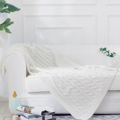 Elevate your comfort with the Cheer Collection Cable Knit Throw Blanket. This exquisite blanket combines warmth, softness, and style to create an essential addition to your home decor. Crafted from a crocheted fabric that’s both warm and well-ventilated, it offers a smooth and comfortable touch against your skin.Designed with chic sensibility, this all-season, lightweight blanket is the ultimate choice for snuggling and getting cozy. Its versatile nature allows it to be draped over a couch, sofa, bed, or armchair, or to be your trusty companion during your travels. Whether it’s the cold of winter or the chill of summer nights, this throw blanket offers the perfect level of warmth and comfort, making it a go-to favorite for any season.Its elegance knows no bounds, boasting a neutral color and classic cable knit design that seamlessly fits into any space. With dimensions of 50″x60″, it’s generously sized to keep you wrapped up in luxury. The cable knit design brings a timeless touch to your surroundings, reminiscent of your favorite sweater.We prioritize your well-being, which is why this throw blanket is hypoallergenic, making it safe for all ages. The 39oz hand-knit acrylic ensures both softness and sturdiness, offering a blanket that’s perfect for cuddling and enduring comfort.Crafted with care, Cheer Collection blankets are known for their luxurious softness and durability. The premium fabric and expert stitching ensure that the blanket maintains its soft texture and warmth over the years. And with its machine-washable design, maintaining the blanket’s pristine condition is a breeze, allowing you to enjoy its coziness for countless moments to come.