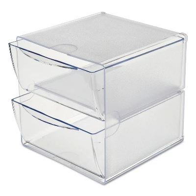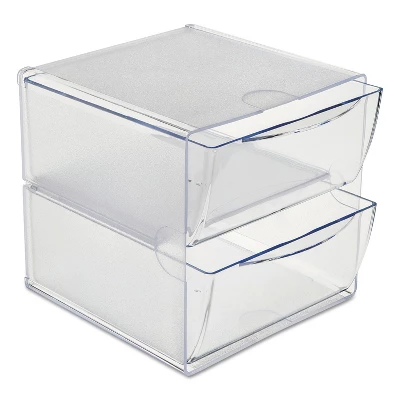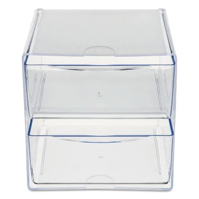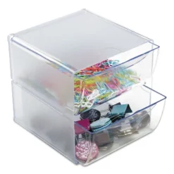 Keep pens, calculators, paperclips, and other items readily accessible with this Deflect-O two-drawer desk cube. Get plenty of space for storing frequently used items with this desk cube. Two drawers let you separate and organize supplies as needed, while the built-in handles offer quick access to contents. This Deflect-O desk cube has transparent drawers, so you can see what is inside at a glance, while the plastic construction provides the durability needed to handle daily wear and tear. Storage drawers are useful desk accessory. Made of clear plastic. Dimensions: 7.13″H x 6″W x 6″D. Features two compartments that can easily store all your supplies. Stackable for customized storage. Sold as 1 Each.