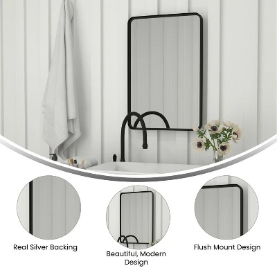 Brighten and open up your space with this decorative hanging mirror. The durable metal frame features a 2″ deep bevel and stylish black finish suitable for any design style or theme. The HD glass features genuine silver backing to reduce image distortion for a clearer reflection while the shatterproof design keeps shards of glass inside the frame if the mirror is broken for safety. A keyhole back design and included screws and wall anchors make hanging your new mirror easy and safe. This hanging wall mirror ships with multiple layers of protective packaging to help ensure it arrives undamaged and ready to use. Whether you’re renovating your bathroom, upgrading your entryway or refreshing your bedroom or home office, this mirror is a great way to open your space and create the feeling of more light.