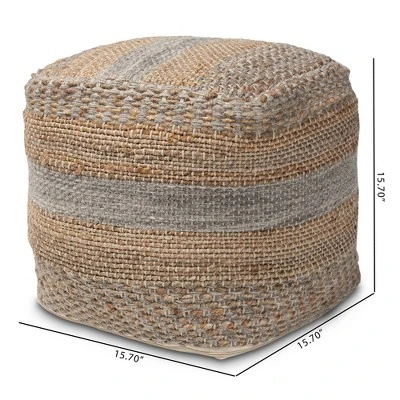 Add a cozy, bohemian touch to any space with the Grange pouf. Handwoven from wool fabric and hemp, the Grange features an understated blend of natural and gray tones. These distinctive colors highlight the various patterns woven into the pouf. The Grange can be used as a seat, footstool, or casual coffee table. Made in India.