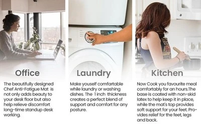 - Multi-use Floor Mat: The J&V TEXTILES standing pad is exceptional for your office while standing at your desk, the kitchen while doing dishes, the laundry room while folding clothes and while working at your workbench