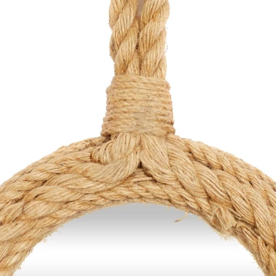 - •This coastal style brown hemp rope and wood mirror set of 3 features a nautical design round mirror framed in hemp fiber with a round noose for easy hanging