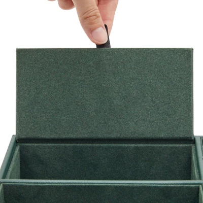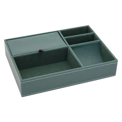 - Dresser Top Organizer: The dark green leather tray for men and women can also be used as nightstand drawer organizer for ring, coins, watch, jewelry, glasses, and small devices; stylishly covered with a sleek inner layer, this womens and mens valet tray organizer will protect your valuables from scratches
