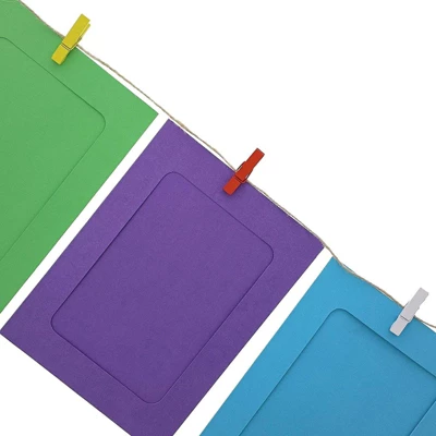 Commemorate your precious moments with this delightful set of 50 cardboard picture frames, 50 multicolored clips, and a roll of string. This versatile collection lets you design customized picture frames for various settings, from home dĂ©cor to office interiors and special events such as weddings and birthdays. Let your creativity shine by adorning the frames with jewels, glitter, or any other embellishments that reflect your style. This set also allows educators to encourage artistic expression in the classroom. Construct a charming photo hanging display with clips to display your students’ artwork and promote a sense of pride and achievement. Each DIY picture frame is designed to accommodate 4×6-inch photos, providing plenty of space to exhibit your cherished memories. With 50 frames, 10 clip colors, and hanging string, you will have all the supplies needed to create an eye-catching display that grabs the essence of your life’s most meaningful moments. Please don’t leave your precious memories hidden; this comprehensive and customizable photo display set brings them to life. Create a visual timeline of your fondest experiences, share your creative achievements, or brighten your living space with this versatile, easy-to-use craft photo frames.