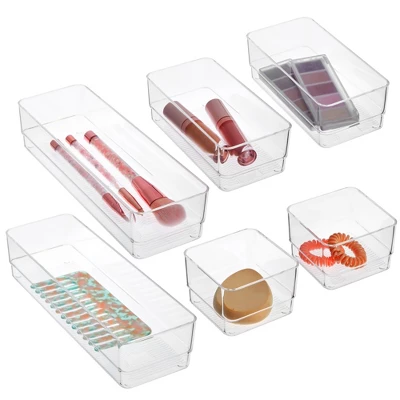 Create a customized organization system for your home or workspace with Juvale’s set of 6 plastic organizer trays. Our set comes with 3 assorted sizes including 3 x 3 x 2 inches, 6 x 3 x 2 inches, and 9 x 3 x 2 inches to ensure you keep your bathroom, kitchen, or desk drawers neat and tidy. The small plastic drawer organizers can be used to store skincare, office supplies, toys, makeup, or hairbrushes. The list of uses is endless!