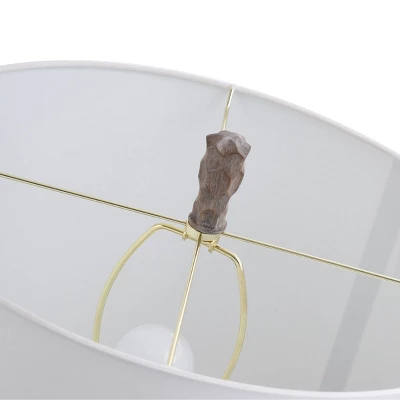 Superb craftsmanship and coloring give this transitional table lamp an appealing mix of modern and rustic styles. The polyresin frame has a gourd shape, bulging in the center of each segmented section. A wooden brown finish provides a little naturalism, while a golden accent line matches the elegant coloring of the neck. A white linen shade emphasizes the fixture’s classy design while drawing a subtle contrast to the dark brown tone. Due to lighting and monitor differences, actual colors and finishes may vary slightly from what appears online