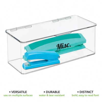 The mDesign office storage organizer bins are perfect for keeping office essentials in one convenient place. Organize pens, pencils, paper clips, staples, sticky notes and more. Convenient and stackable, these deep-capacity bins can be used all over the home, not just in the office! The hinged lids make the bins easy to stack to create vertical, space-saving storage in file cabinets, desk drawers, bookshelves and on desk tops. It’s easy to create the storage solution that works best for you in any room of your home! Labels make it simple and easy to organize and find everything you need in your pantry at a glance. The set includes four sheets of identification labels (thirty-two total). Labels are removable and repositionable for worry-free organization.