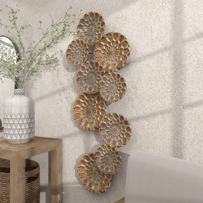 - This medallion wall decor is constructed from shaped metal discs welded to a supportive backing