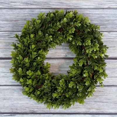 Decorate your front door, mantle, or kitchen with this Nature Spring Artificial Boxwood Wreath. Detailed with durable brown twigs and bright variegated leaves on the front and back, this faux boxwood offers realistic beauty without any upkeep. Built-in ultraviolet protection prevents fading so you can enjoy this elegant greenery indoors or out, any season of the year.