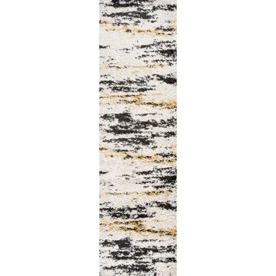 With abstract stripes creating a strie’ effect, this modern rug is the perfect anchor for a contemporary or minimalist space. The overall pattern is a family-friendly solution for a living room, bedroom, hallway or entry. Soft and fluffy shag yarns make it easy to go barefoot.
