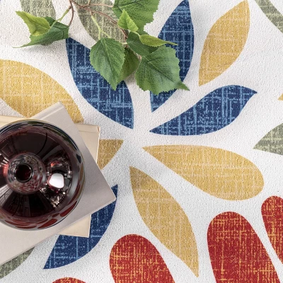 Add a pop of color to your space with our bohemian floral machine washable area rug. Made from sustainably-sourced, premium recycled synthetic fibers, this washable area rug is made to withstand regular foot traffic. Our machine-washable collection is functional and stylish to keep up with your busy lifestyle. Simply roll your rug up, throw it in the washing machine, and you’re done! Elevate your space with our pet-friendly and easy to clean area rugs.