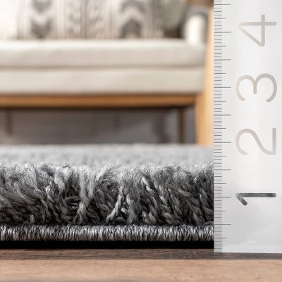 You’ll enjoy the feel of this luxurious nuLOOM Gray Shag Rug. Wiggle your bare feet on it. Sit or lie down on it. Soft and resilient fibers make it both comfy and strong so it’s able to put up with lots of wear. The neutral color fits into any décor.