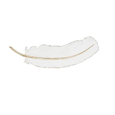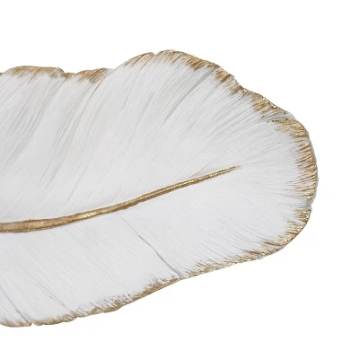 Create a balanced space in the most creative way with this expertly crafted wall decor for captivating focal point. Showcase your personality and turn your walls into an art gallery with this captivating wall decor. This white and gold “Falling Feather” wall art is ideal for minimalist, eclectic, and modern-themed living spaces. This item ships in 1 carton. Can be hung horizontally using the keyholes on the back; nails and screws not included. Suitable for indoor use only. This item ships fully assembled in one piece. This is a single white colored wall sculptures. Eclectic style.