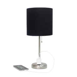19.5″ Bedside Power Outlet Base Metal Table Desk Lamp In White Fabric Shade – Creekwood Home