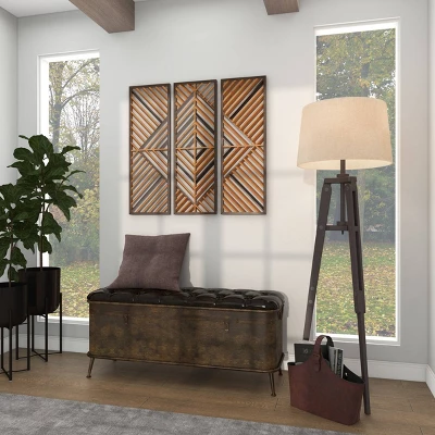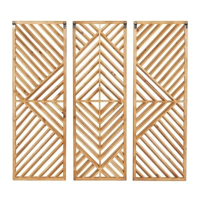 Create an excellent focal point on your walls paired with some cute accent tables, and level up your home with this amazing wall decor. Showcase your personality and turn your walls into an art gallery with this captivating wall décor. Mesmerizing wall art is ideal for industrial, eclectic, and farmhouse-inspired living spaces in a natural setting background. This item ships in 1 carton. Can be hung vertically using the D-rings on the back; nails and screws not included. Suitable for indoor use only. This item ships fully assembled in one piece. This brown colored wall sculptures comes as a set of 3. Contemporary style.