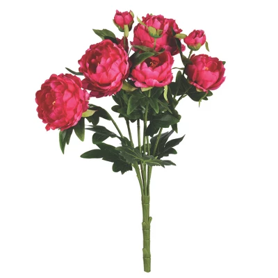 Vickerman Artificial Peony Bush 9 Blooms. This peony bush is the perfect addition to any floral arrangement for a complete look.